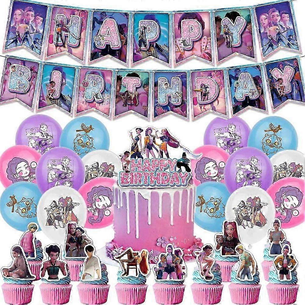 Demon Hunters Themed Birthday Decorations Anime Party Supplies Kit with Banners Balloons Cake Toppers for Kids Teens