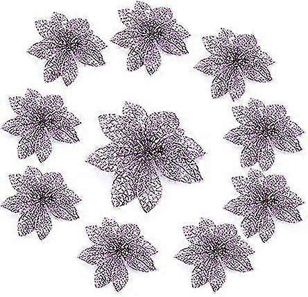 Tizzy Christmas Decoration Glitter Purple Christmas Flowers Hollow Artificial Cloth Simulation Christmas Tree Flowers For Wedding Party Decor Ornament