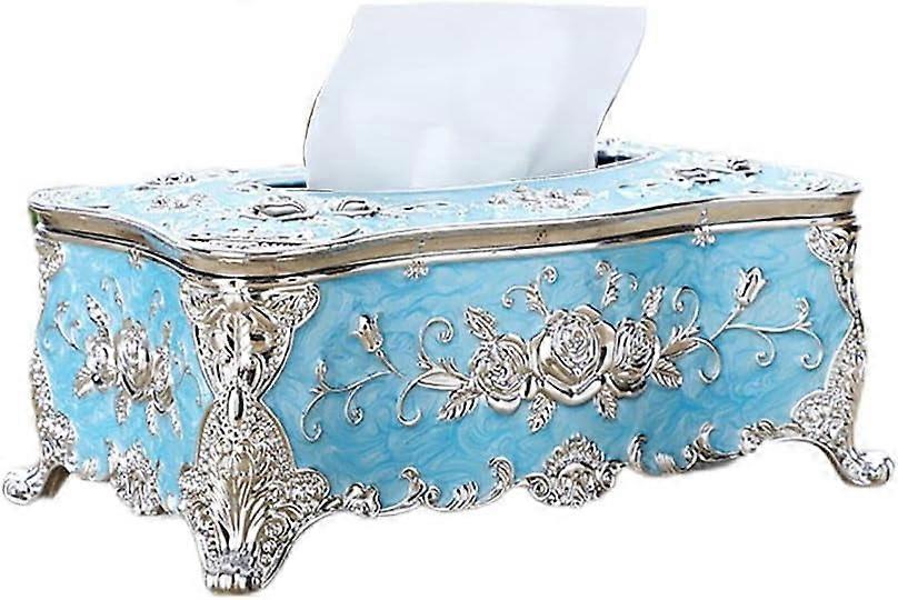 Tissue Cover Holder, Embossed Roses & Rhinestones Acrylic Tissue Box Dispenser for Bathroom, Bedroom, Office & Car - Light Blue-Silver