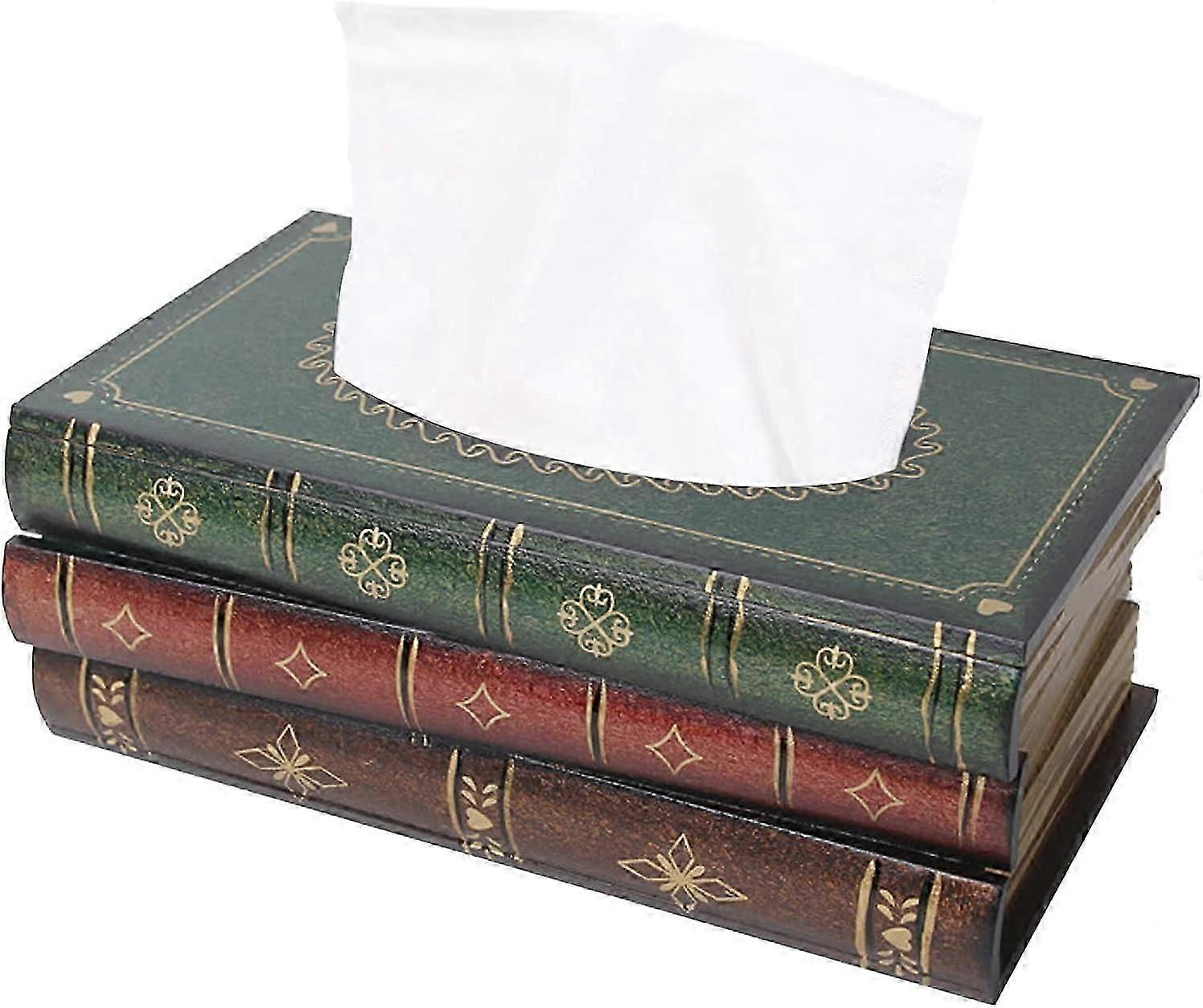 Tissue Box, European Shape Retro Book Tissue Wooden Box Tissue Napkin Dispenser Storage Box Decorative Items, Wood 25.5X14.5X10Cm (Green)