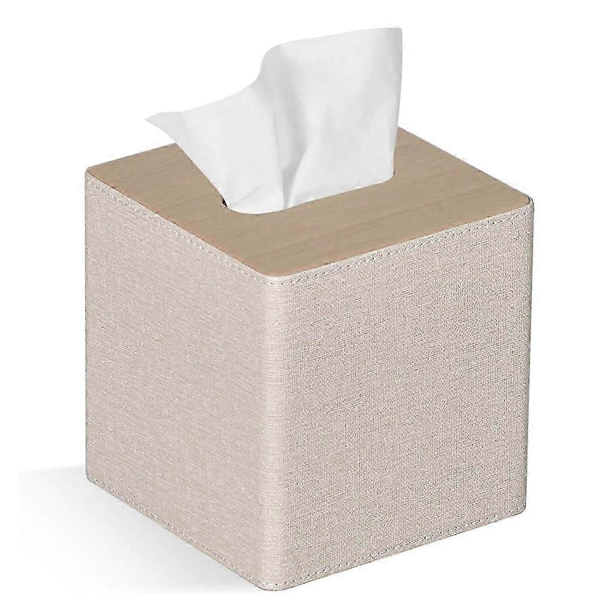 Tissue Box Cover Square PU Leather Facial Tissue Box Holder for Dresser Bathroom Decor