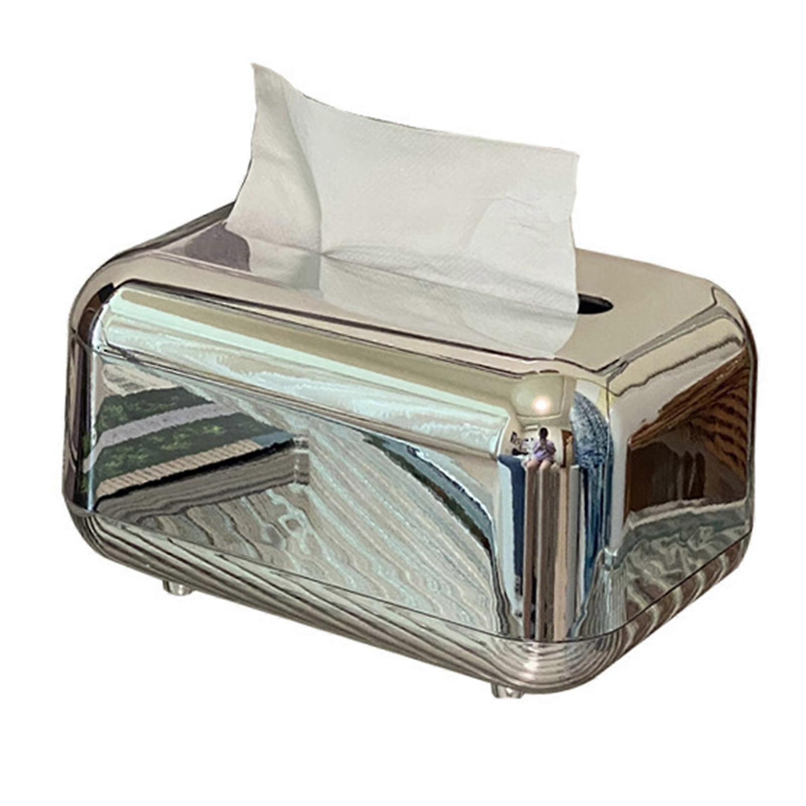 Tissue Box Cover Large Capacity Rectangle Vintage Tissue Box Holder Napkin Dispenser for Home Office Living Room,Sliver-style1482-