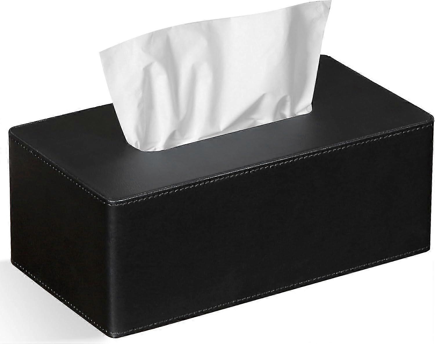 Tissue Box Cover Rectangular PU Leather Facial Tissue Dispenser Box Holder for Dresser Bathroom Decor (Black)