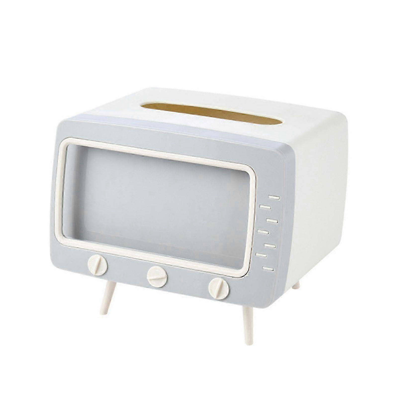 Tissue Box 2-in-1 Multifunctional TV Shape Paper Dispenser Napkin Case Phone Holder for Desktop