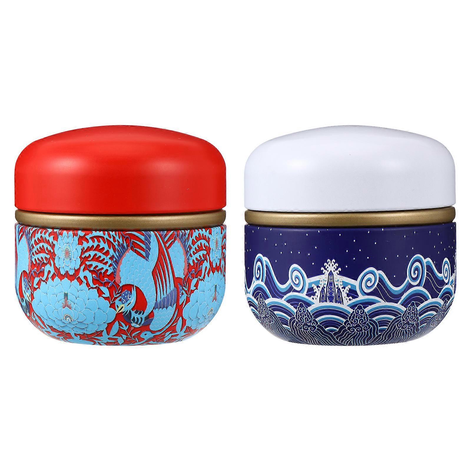 Tea Canister Metal Tinplate Jam Container for Decor 2Pcs Sealed Canisters