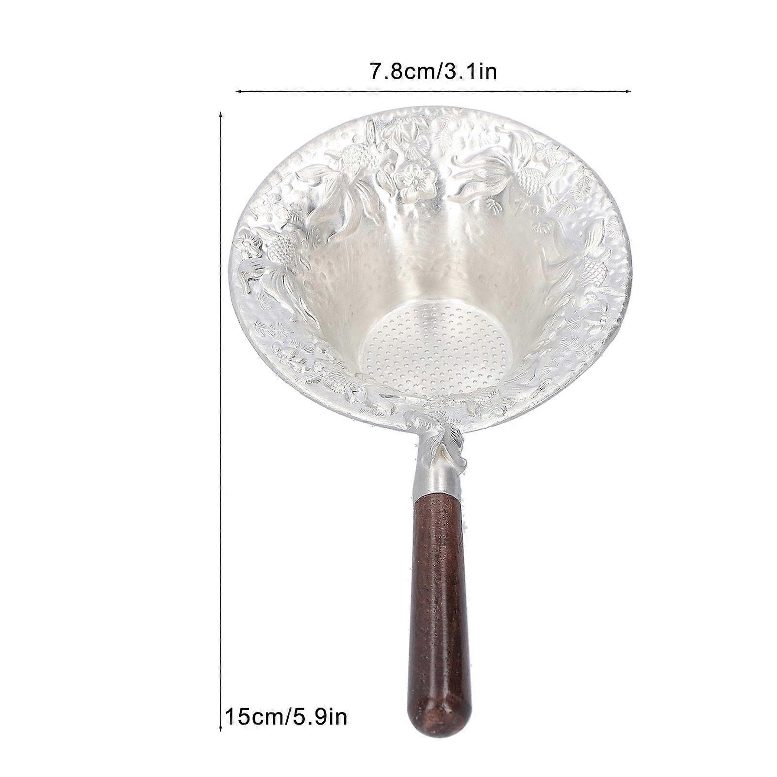 Tea Strainer Japanese Style Hand Made Tea Leaf Infuser Filter Tea Set Accessories(Black Sandalwood Handle ) Item Type: Tea Strainer Material: Tin + Wood Process: High Temperature Calcination Weight: Approx. 77g / 2.7oz Features: The tea strainer is a tool used to filter the tea dregs and enhance the tea infusion. If you do not use the tea strainer in the tea ceremony, you will find that the tea soup is full of finely divided tea dregs. Size: Approx. 15x7.8cm / 5.9x3.1in