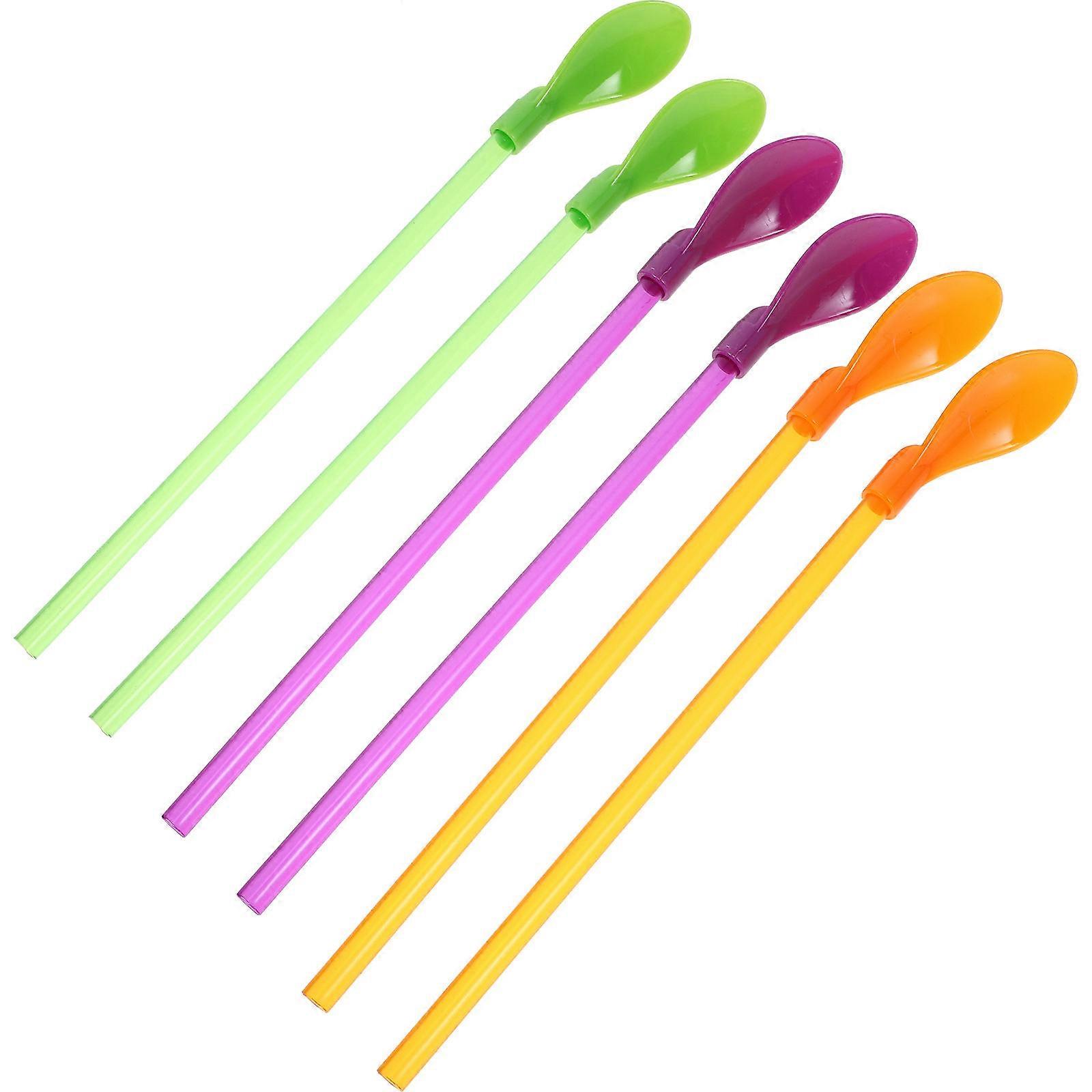 Drinking Tea Spoon Creative Straw Spoon Purple Multifunction Design Party 6Pcs