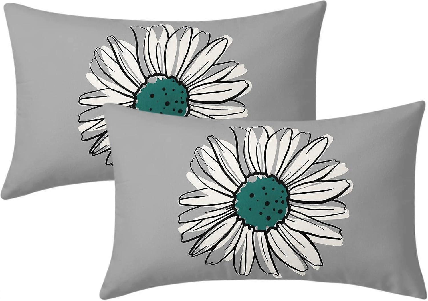 Teal Daisy Pillow Covers 12X20 Inch Spring Summer Floral Lumber Pillow Cases Modern Abstract Flower Rectangular Throw Pillows Set of 2 Home Decor for