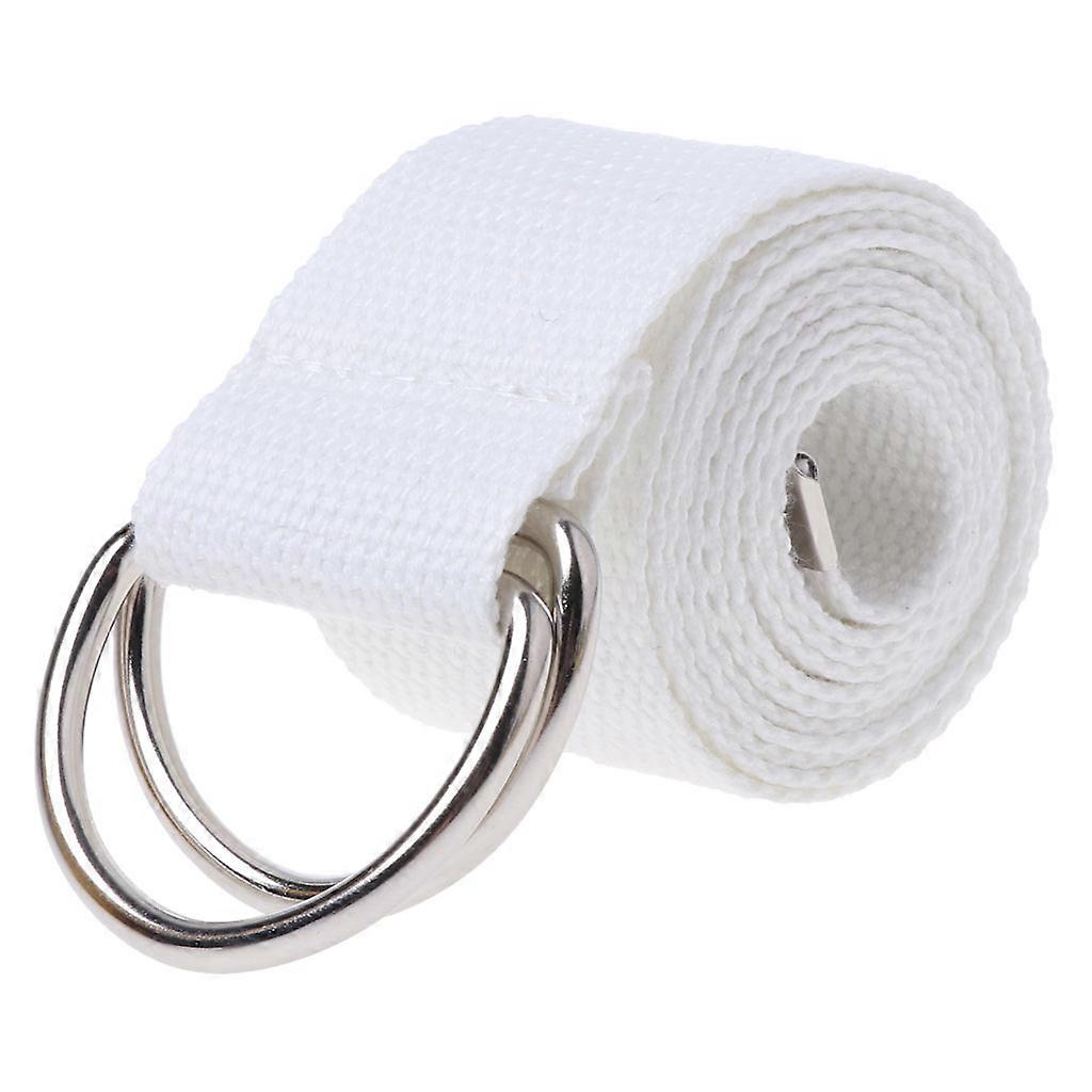 Teenager Boys Girls Students Double Ring Buckle Waist Belt Canvas Solid Color White