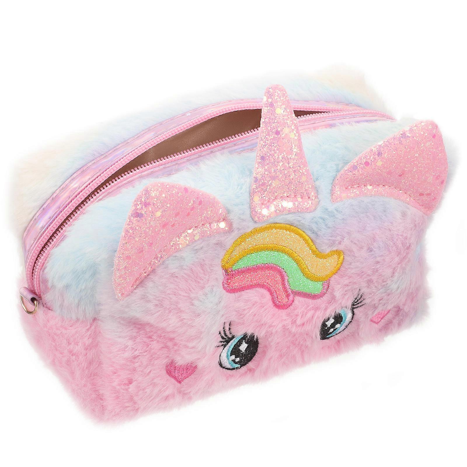 Cute Plush Unicorn Zipper Makeup Bag for Teen Travel – Lightweight Toiletry Organizer for Essentials, Trips & Daily Use – Pink Cosmetic Pouch