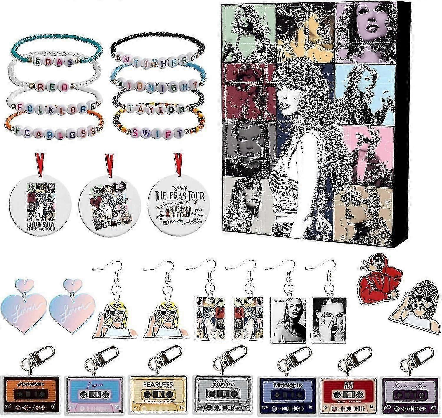 Taylors Christmas Advent Countdown Decoration 24 Pcs Gift Christmas Acrylic Decoration Keychain Bracelets Earrings Surprise Christmas To Favorite Xmas