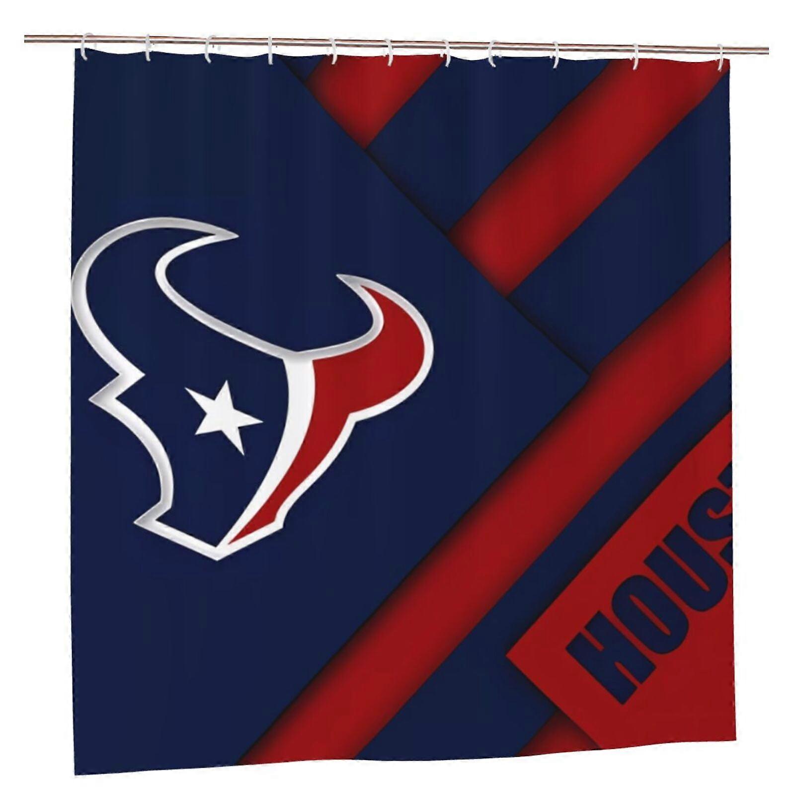 Texans Waterproof Shower Curtain 72x72in with Hooks, Quick-Dry Plastic Bathroom Curtain Compatible with American Football Decor