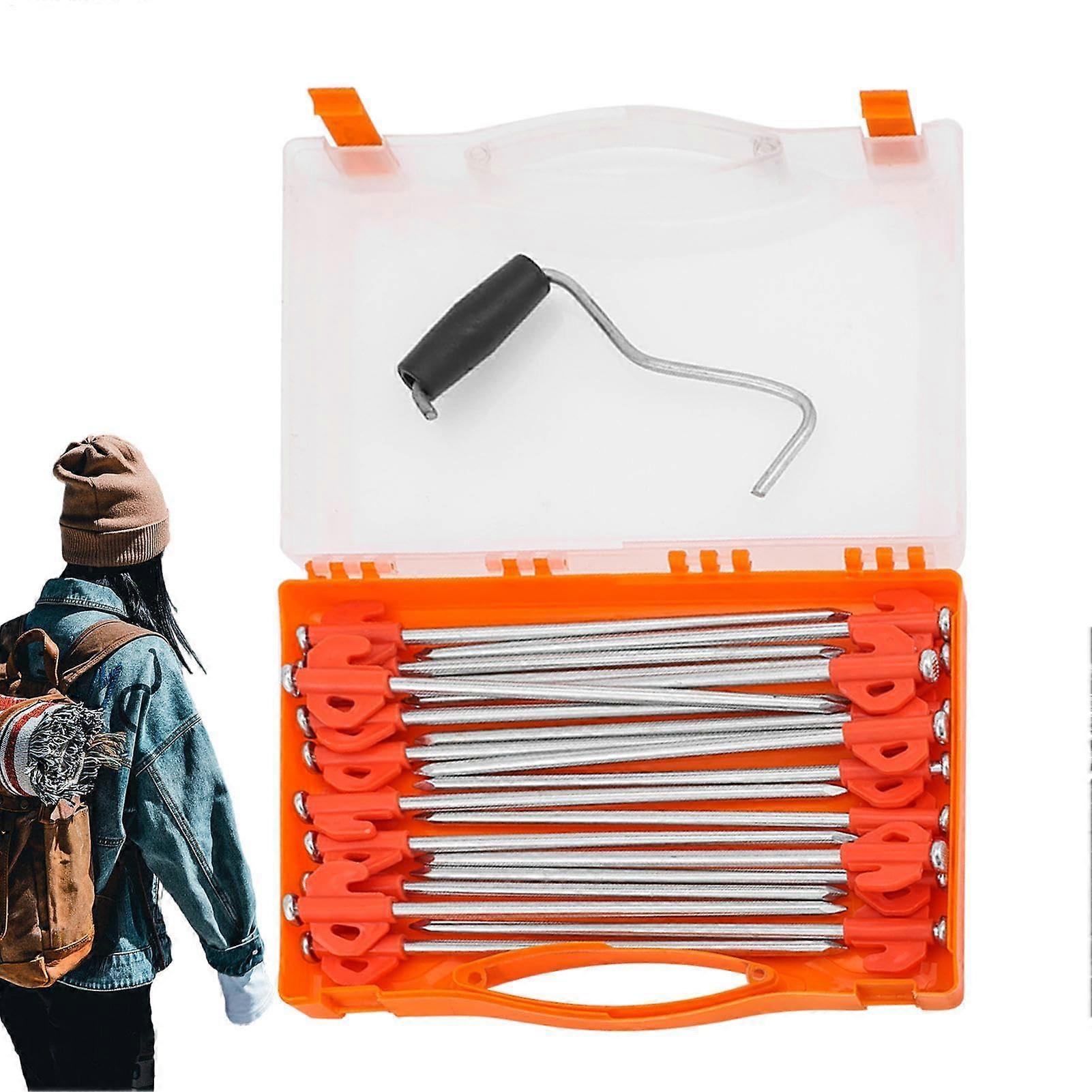 Reliable tent stakes designed for consistent performance across ground types and winds. - High-strength steel construction with hardened tips resists bending and delivers lasting performance in hard, rocky, or windy conditions. - Non-slip hooks and quick-hanging holes enable fast, secure attachment of tent cords, reducing movement and setup time. - Easy removal and storage: Pegmer stakes pull out easily from the ground and include a storage box for convenient transport and organized storage. - Size, compatibility, and performance: Available in multiple lengths for different tents and ground conditions; compatible with standard stakes and guy lines to ensure stability on varied terrain. - Use cases: Perfect for hard-packed or rocky sites where standard stakes struggle; effective in soft soil or sand with reliable hold; suitable for exposed, windy camps where added stability is beneficial.