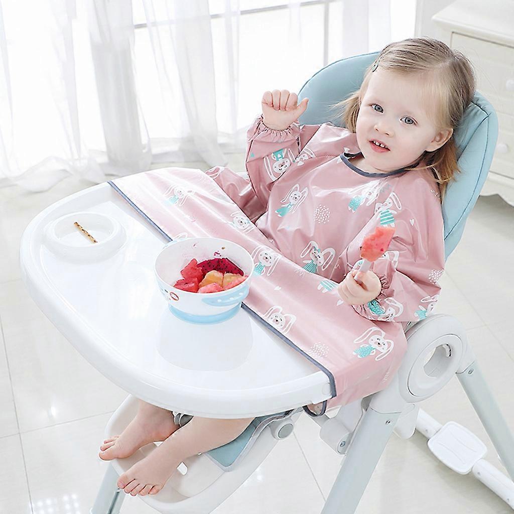 Food Feeding Highchair Bib Coverall with Table Cloth Cover Baby Dining Chair Gown Waterproof Saliva Towel Burp Apron Pink
