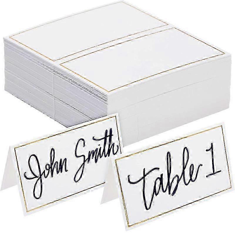 100Pcs Name Cards for Table Setting, Tent Place Cards with Gold Foil Border for Wedding Banquets Events Reserved Seating