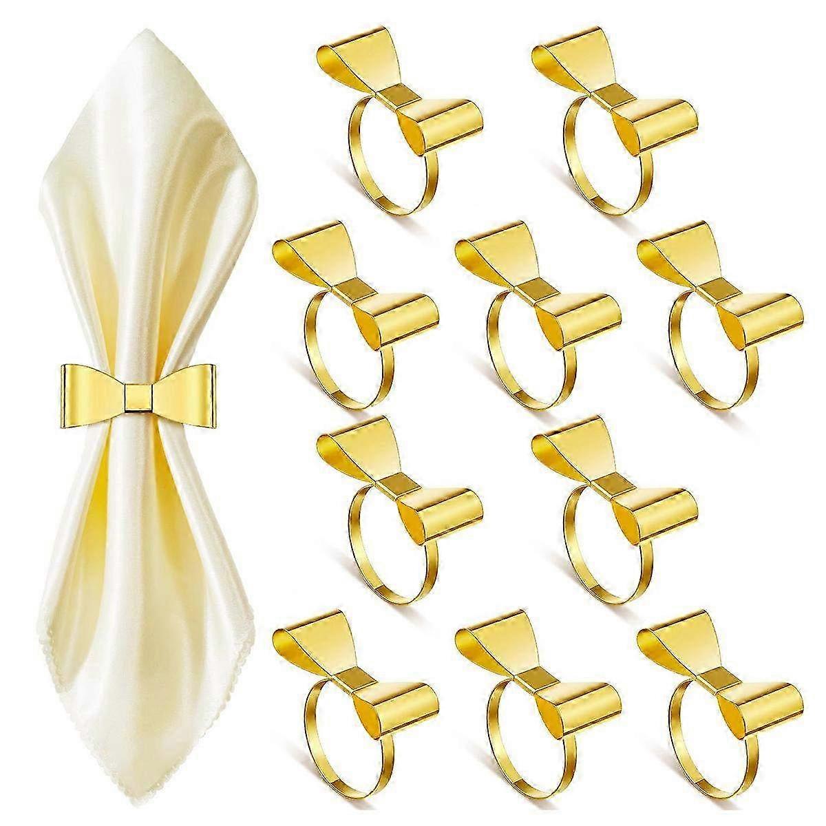 Stainless Steel Napkin Rings with Gold Bowknot Design for Table Decorations and Dining Accessories