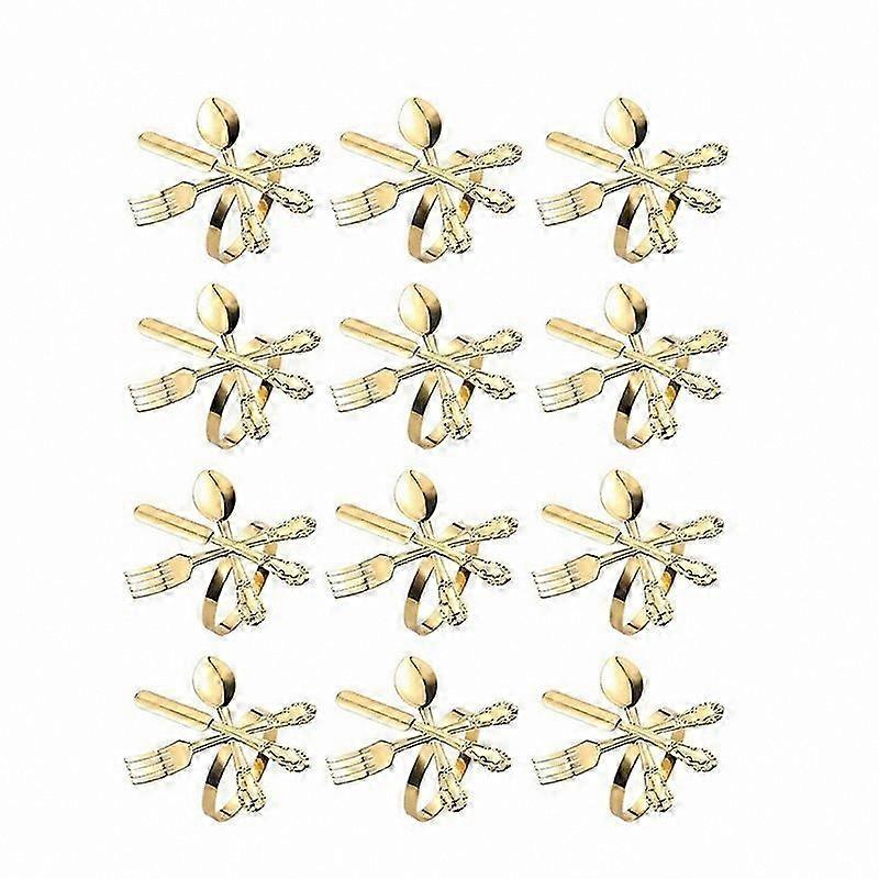 [Multipurpose Napkin Holder] – Ideal for weddings, candlelight dinners, Christmas, New Year, baby showers, anniversaries, birthdays, banquets, buffets, and various festival events. Can be used as a decorative accessory for table settings, chair sashes, candle holders, bouquet embellishments, wine bottle decorations, hydroponic vases, and more. Suitable for occasions such as Mother's Day, Valentine's Day, and housewarming celebrations. [12-Piece Napkin Rings Material] – Made of metal, designed for durability and repeated use. Medium weight with a consistent finish and attention to detail, making it suitable for both casual and formal table settings. [Design] – Features a knife, fork, and spoon design, serving as both functional napkin holders and elegant table accents. Adds a refined touch to your dining setup and enhances the overall table presentation. [Warm Tips] – Resistant to dirt and does not require frequent cleaning. If needed, gently wipe with a dry or slightly damp cloth. Easy to clean and convenient to use. Color: Gold Material: Metal Package Contents: 12 x Napkin Rings Note: Light reflection and differences in display screens may cause slight variations in color between the image and the actual item. Measurement may vary by +/- 1-3 cm.