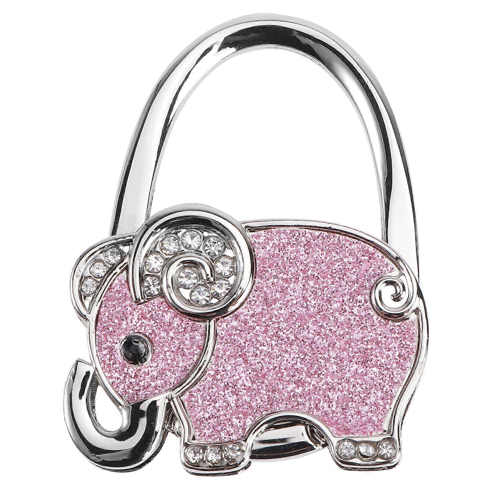 Table Foldable Purse Bag Rhinestone Elephant Hanger Handbag Hook Holder (Pink)