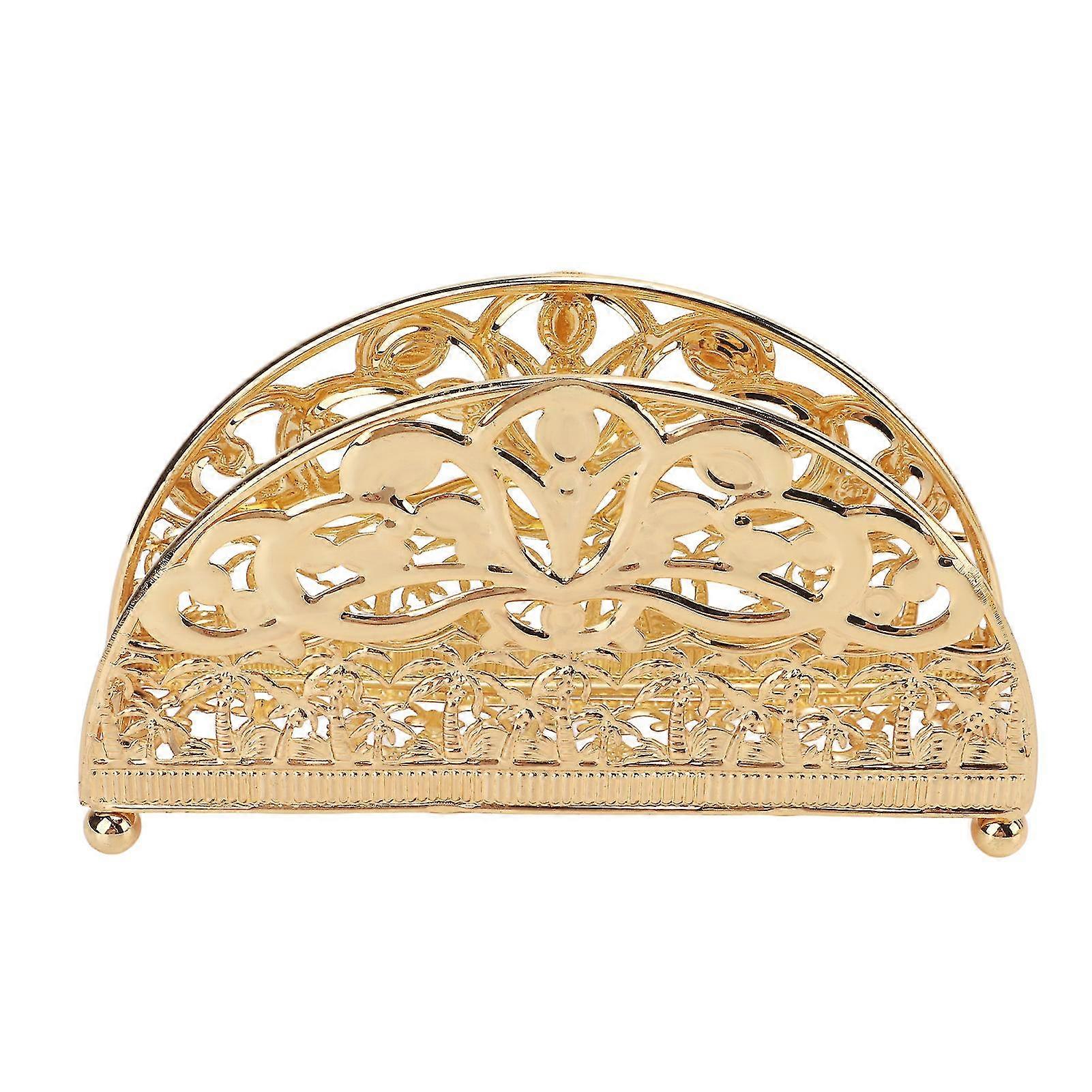 Gold Metal Napkin Holder for Tables Kitchen Restaurant Bar Vertical Desktop Tissue Organizer with Hollow Iron Pattern