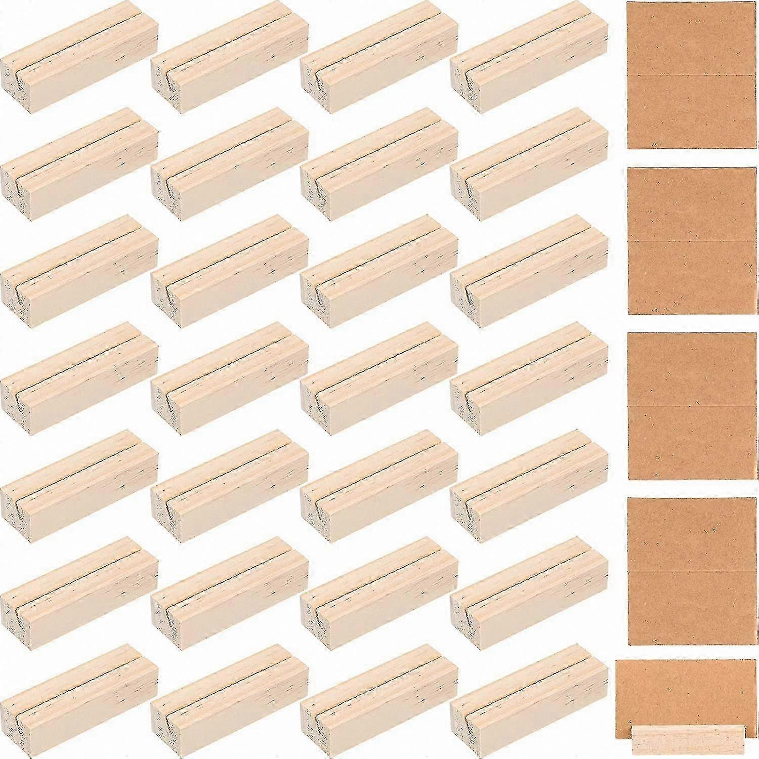 Wooden Sign Holders for Table Numbers and Cards, 30 Pack with Paper Inserts for Events and Decor