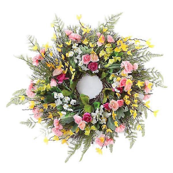 Features: 1. Handmade artificial carnation, garden leaf grass with rattan weaving material on the back for retention. 2. Perfect for decorating weddings, stages, living rooms, bedrooms, offices, dining rooms, birthdays, farmhouses, etc. It can be used indoors or outdoors, making it a versatile decorative accessory that hangs over the fireplace and over the front door. 3. Almost natural shape suitable for spring and summer door decoration. If you are looking for that special wreath to beautify your home or event decor, this is the wreath for you. Specification: Material: Fabric Size: Dia 60cm Color: See picture Package Includes: 1 x Wreath