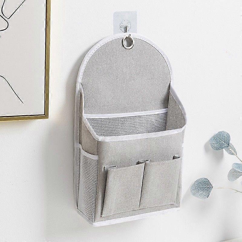 Wall Hanging Storage Bag Over The Door Closet Organizer Hanging Pocket Linen Cotton Organizer Box Containers for Bedroom Bathroom Grey