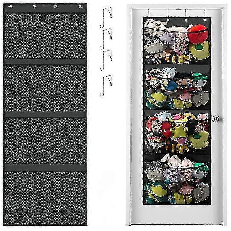 Storage Bag for Stuffed Animals Over Door, Plush Toy Storage Bag, Stuffed Animal Hanging Shelves Bag with 4 Large Mesh Pockets