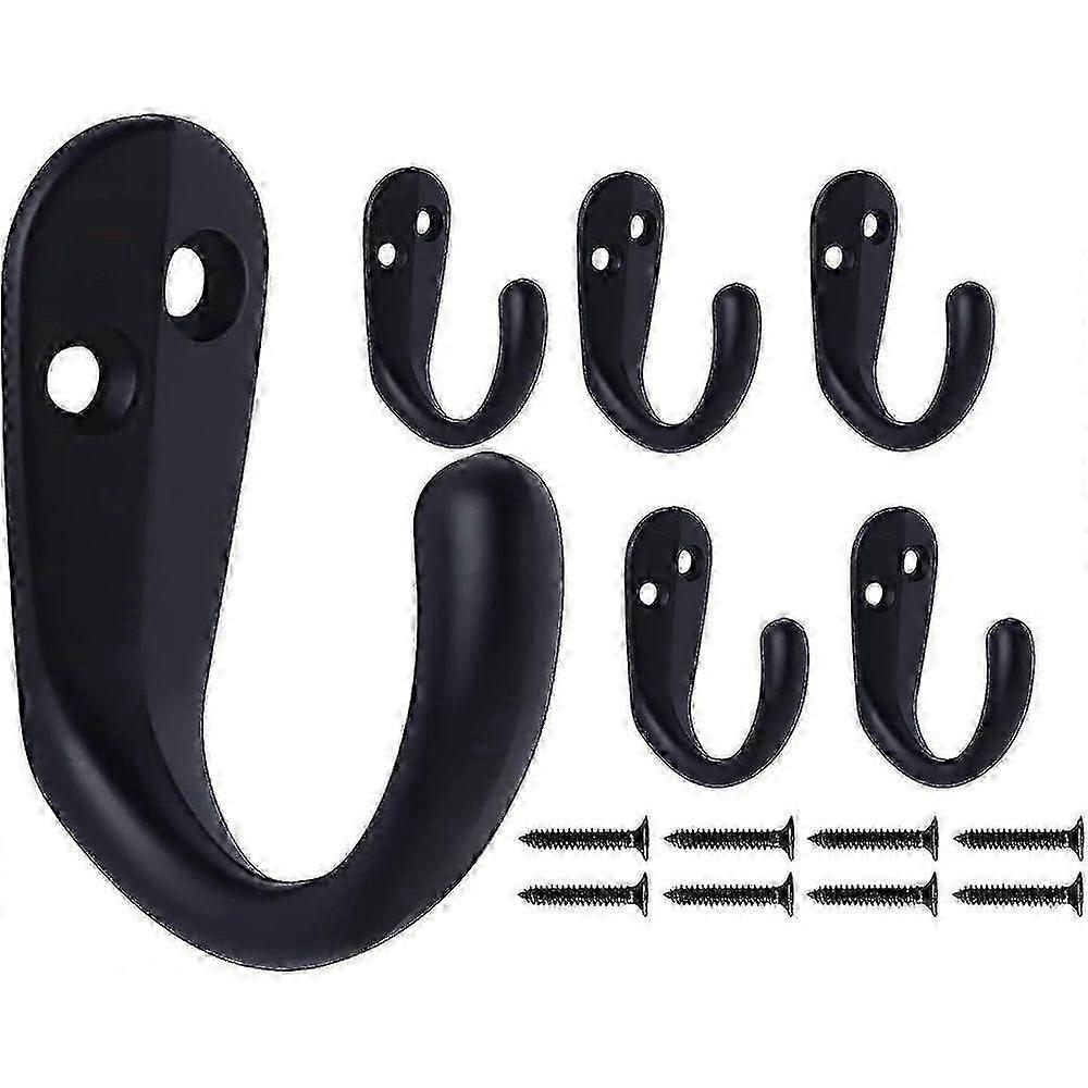 MATERIAL: The heavy duty screw in door hook is made of good quality zinc alloy which is rust-proof, scratch-resistant and durable. MULTIFUNCTIONS: Small metal hooks are strong enough to hang clothes, hats, towels, bags, keys, umbrella, cups, curtains, etc. WIDE APPLICATIONS: The retro wall hooks can be installed anywhere: kitchen, bedroom, bathroom, toilet, shop, office, etc. SIZE: The vintage hanging robe hook is 48 x 19 mm / 1.89 x 0.75 inches. The length of the screw is 18mm / 0.71'. PACKAGE CONTAINS: 6 black single coat hooks heavy duty and 12 screws.