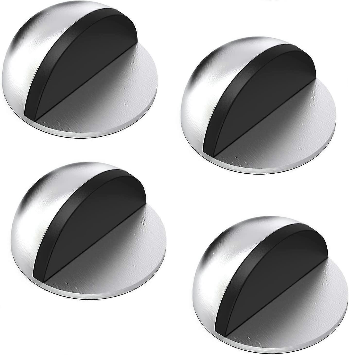 Door Stops, Set of 4 Stainless Steel Door Stops and Stoppers with Rubber Bumpers, Adhesive Door Stopper for All Hard Floors