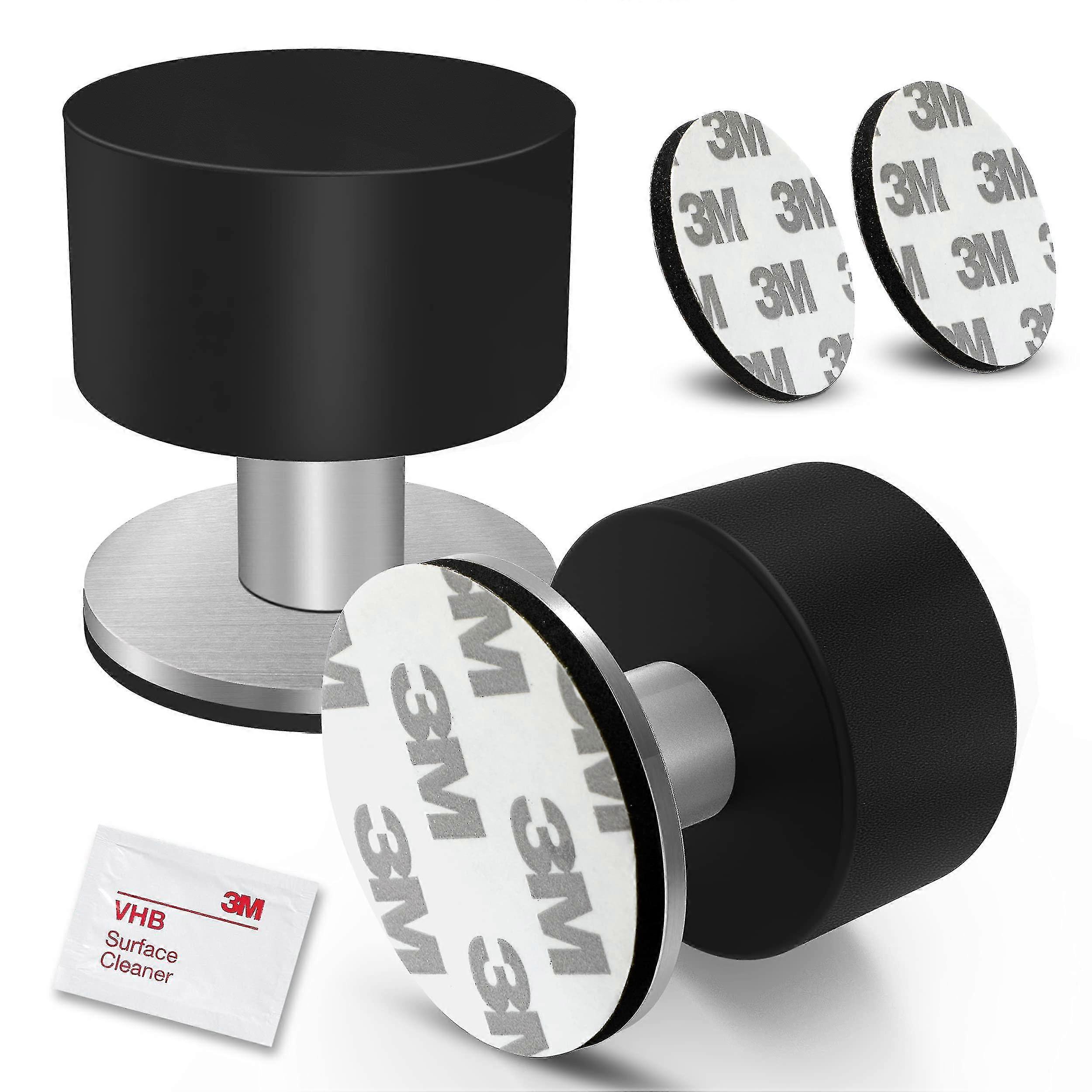 Door Stops 2pcs - Stainless Steel Black Door Stoppers With 3m Vhb Sticky Adhesive & 2 Extra Stickers - Sound Dampening