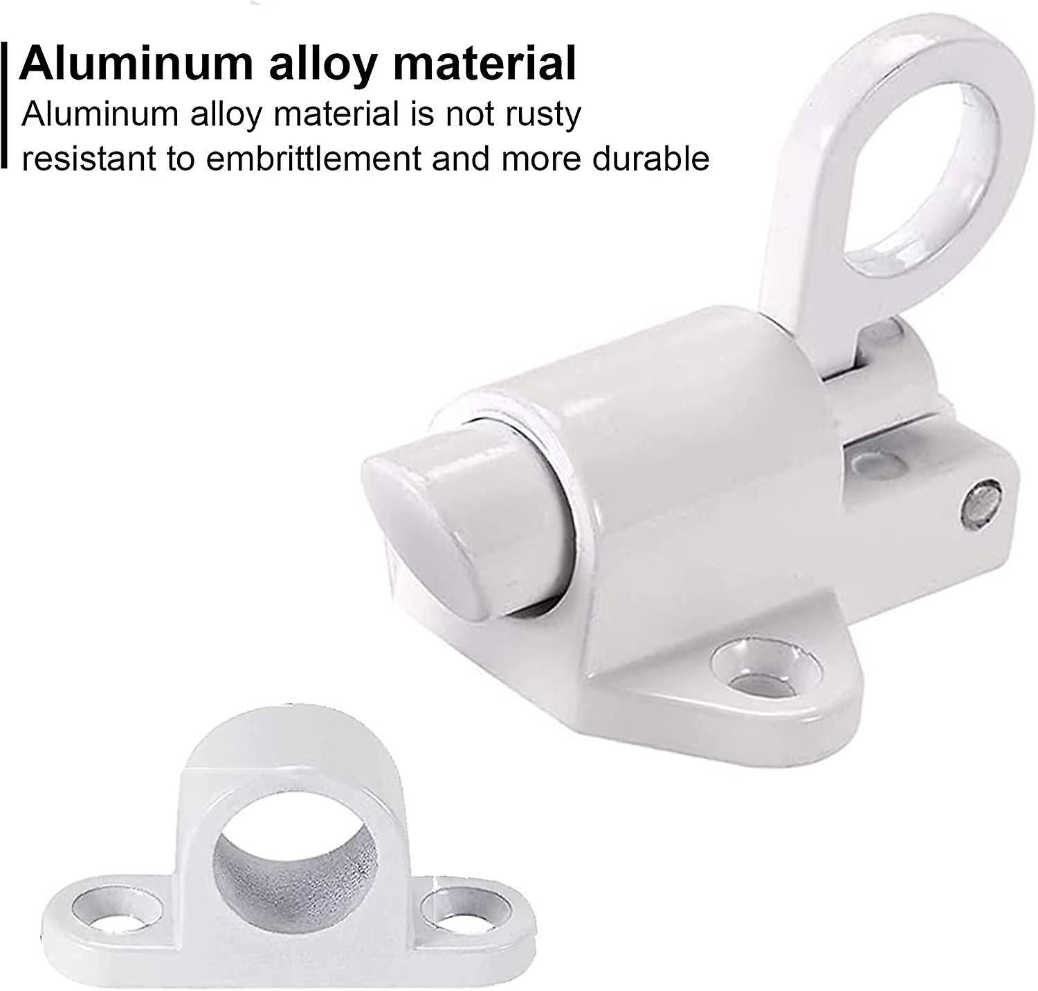 Door Spring Bolt Automatic Latch Lock Slide Spring Latch Bolt Aluminum Alloy Security Automatic Window Gate Bolt with Screws for Shed Doors Gates Cabinet Courtyard Doors High Quality Material: The spring automatic door bolt is made of solid aluminum alloy, with high hardness and strength, rust-proof and no deformation. The surface is painted, not easy to peel off, and durable. Internal spring design: Door latch lock inner ring is equipped with a spring and a circular pull ring, which is convenient for switching; the base is thickened, and the handle is cast as a whole, with high stability. The smooth surface has no barbs, so you don't have to worry about hurting your hands when pulling. Easy to Install: Garage door bolt are easy to install, just place the door bolts where you need to install them, and then use a Phillips screwdriver to tighten the screws to stabilize. No need to hit with a hammer. Wide range of uses: The garden shed lock door latch is suitable for fixing small doors and windows, fences, courtyard doors, desk drawers, cabinets, toolboxes, cage doors, shed lock doors, lockers, kitchen cabinets, etc. The white door latch has a high appearance and is suitable for most furniture. color: White Size: as shown Quantity: 2pcs Kind tips: 1.As different measuring methods,it will occur 1-3 cm deviation about the items,please ensure that it is okay for you before ordering. 2. Because of different monitors and lamplight, the picture may not reflect the actual color of the item, really thank you for your kind understanding. 3. Only the above package contents, excluding other products.