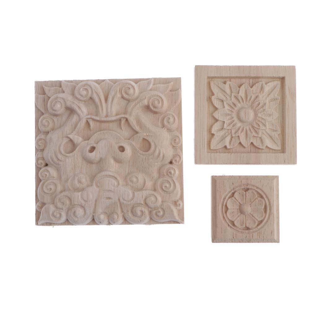 3pcs square wooden carved engraved floral onlay applique for door furniture