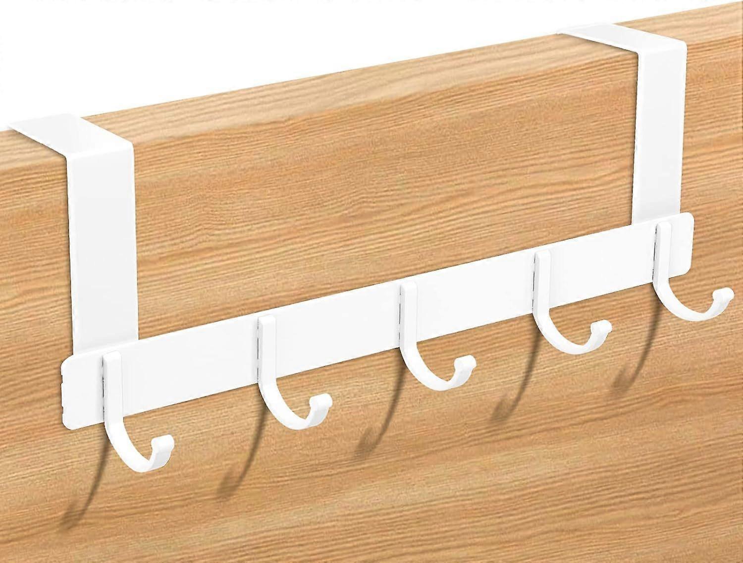 Coat Rack for Door, Over the Door Coat Hook Hanger with 5 Hooks, Door Sill Hooks for Kitchen, Bedroom, Bathroom (White)