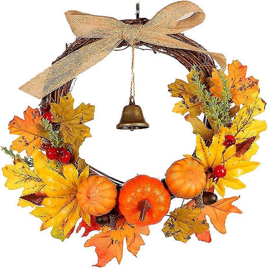 Halloween Wreath for Door Artificial Autumn Wreath Fall Maple Leaf Pumpkin Wreath Halloween Thanksgiving Door Decorations(1pcs, orange)