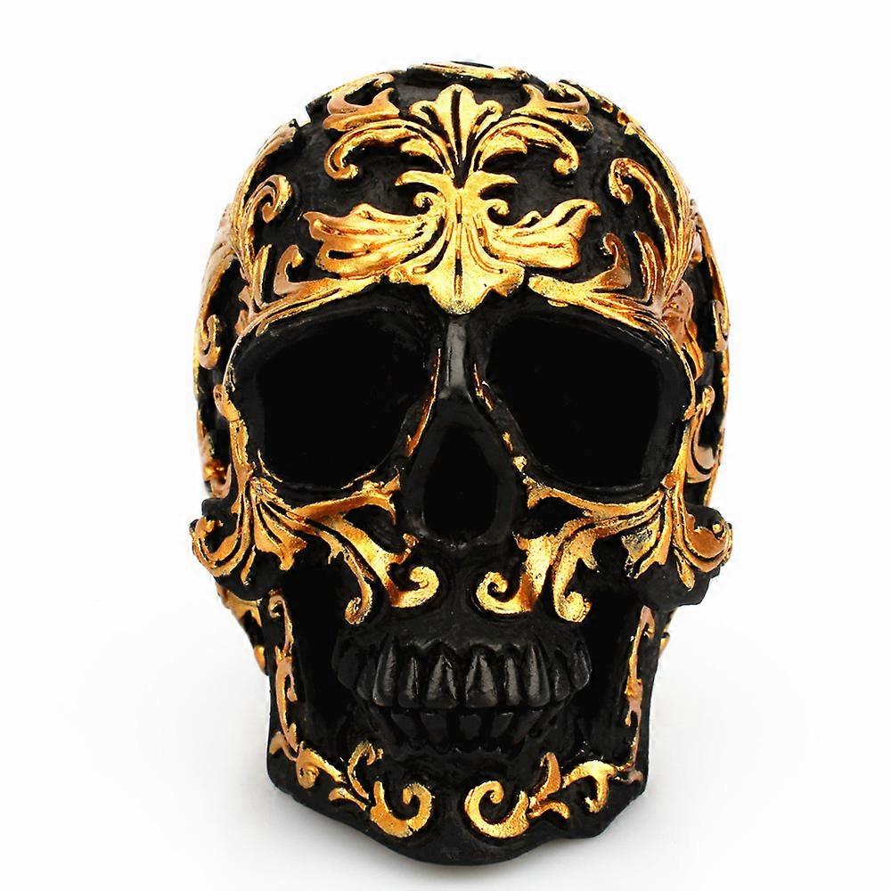 Skull Figurine Resin Decorative Halloween Sculpture Statue Home Halloween Ornament(1pcs, black and gold)