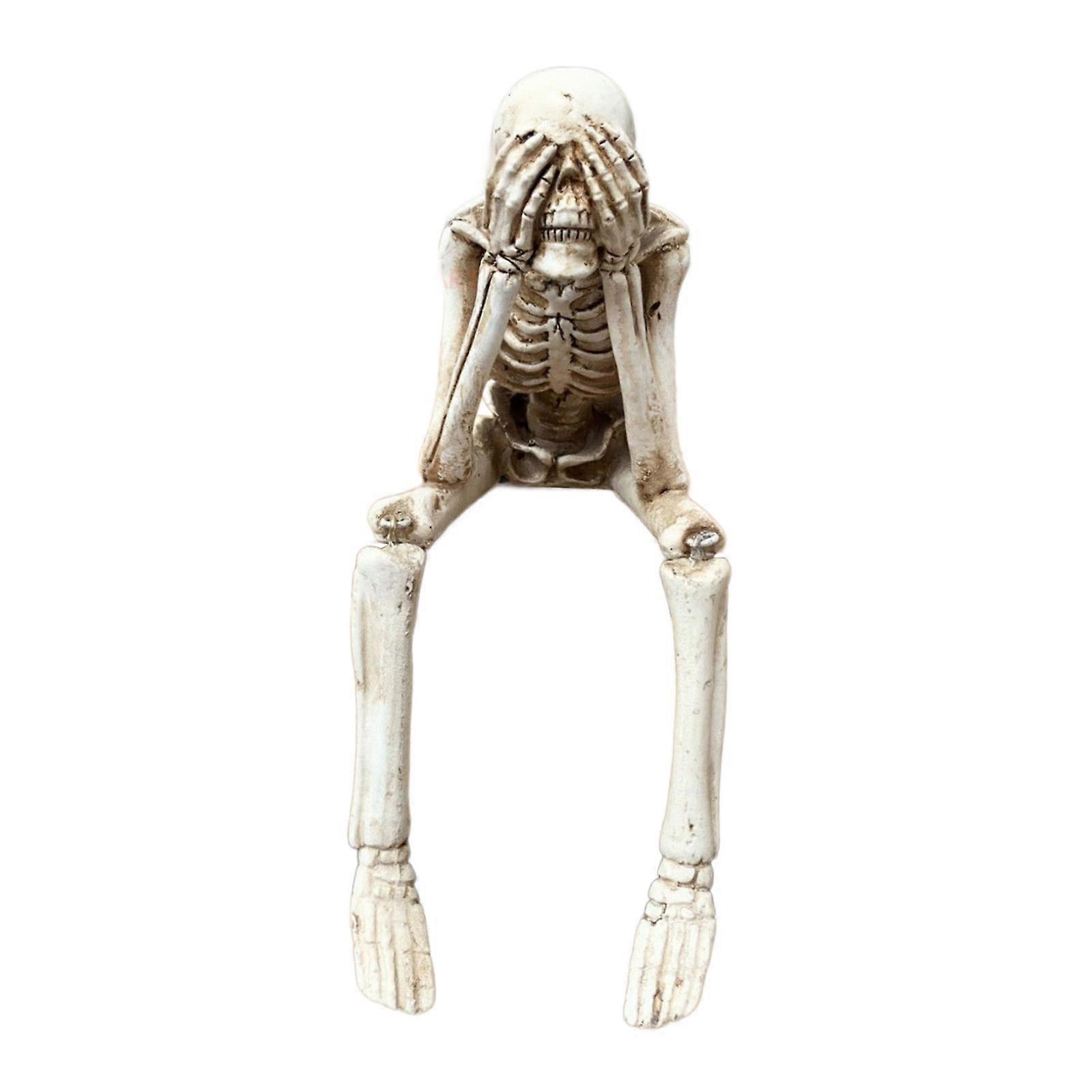Skull Statue Desktop Sitting Miniature Resin Home Decor Halloween Decoration Cover Eyes