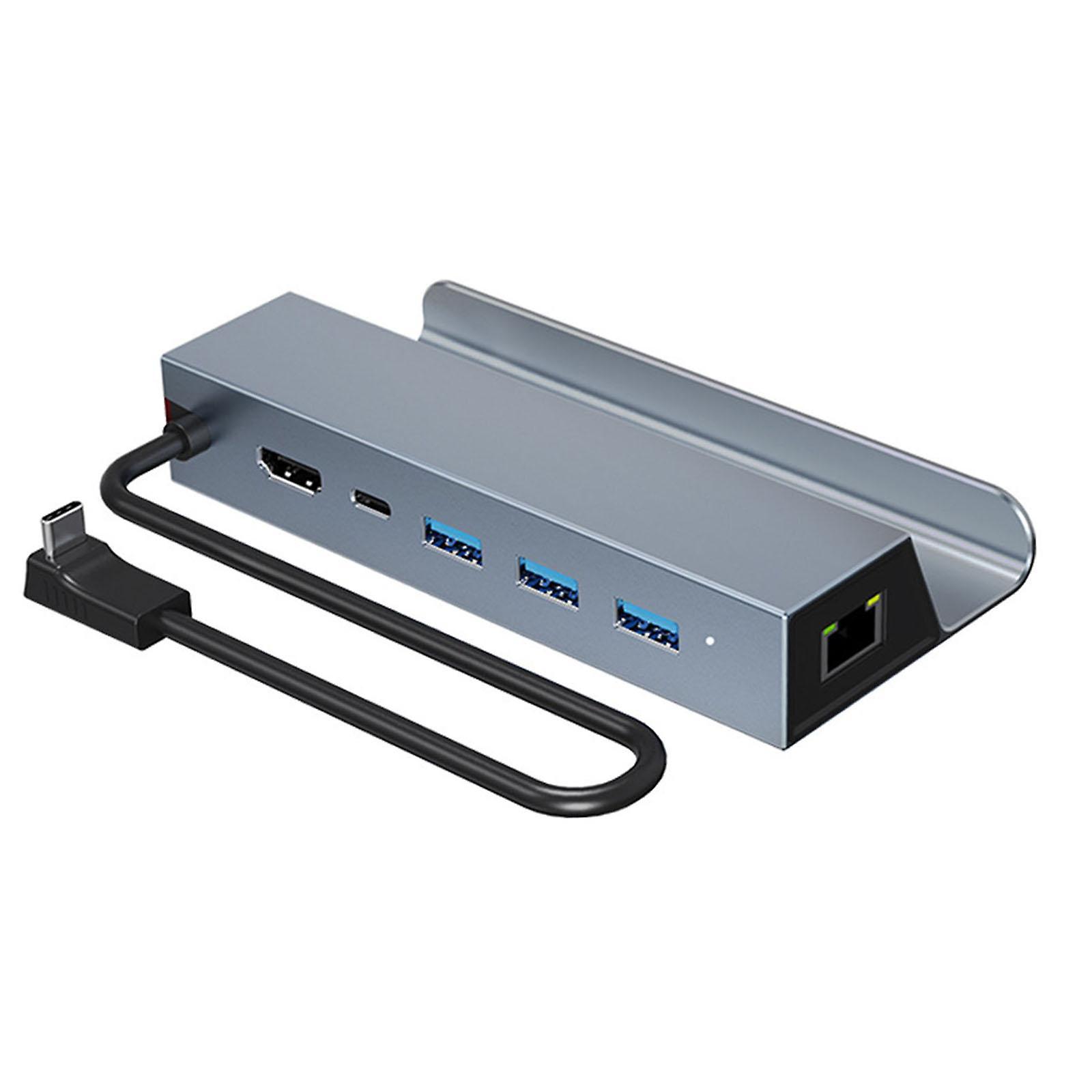 Description: 4K@60Hz: Docking Station supports up to 4K@60Hz video signals transmissions, allowing players to enjoy smooth and clear game pictures on TV. This is undoubtedly a huge attraction for players who like to play games on the big screen.6 in 1: USB C Hub adopts an integrated connection cable design, which avoids the trouble of losing cables when traveling, and also makes the device more neat and beautiful.Bracket converter: Multiport Adapter Converter also has the function of a TV bracket converter, which can easily fix the game consoles next to the TV or monitors, so that you can adjust the angle and position at any time.Easy to install: Docking Stations simple appearance design and intuitive method also make this docking station very easy to use, and users can easily install and use it.Parameters: USB 3.0 Port 480Mbps: Network Port 100Mbps;PD charging port 100W high power. Specification: Material: Aluminum AlloyPower Output: 5V-20VPower Input: 5V/1.5ACurrent: 3A-5APower: 15W-10W Size Chart: 136mmx66.5mmx25mm/5.35inchx2.62inchx0.98inch Package Includes: 1Docking Station Note: Please allow slightly errors due to manual measurement and different monitors.
