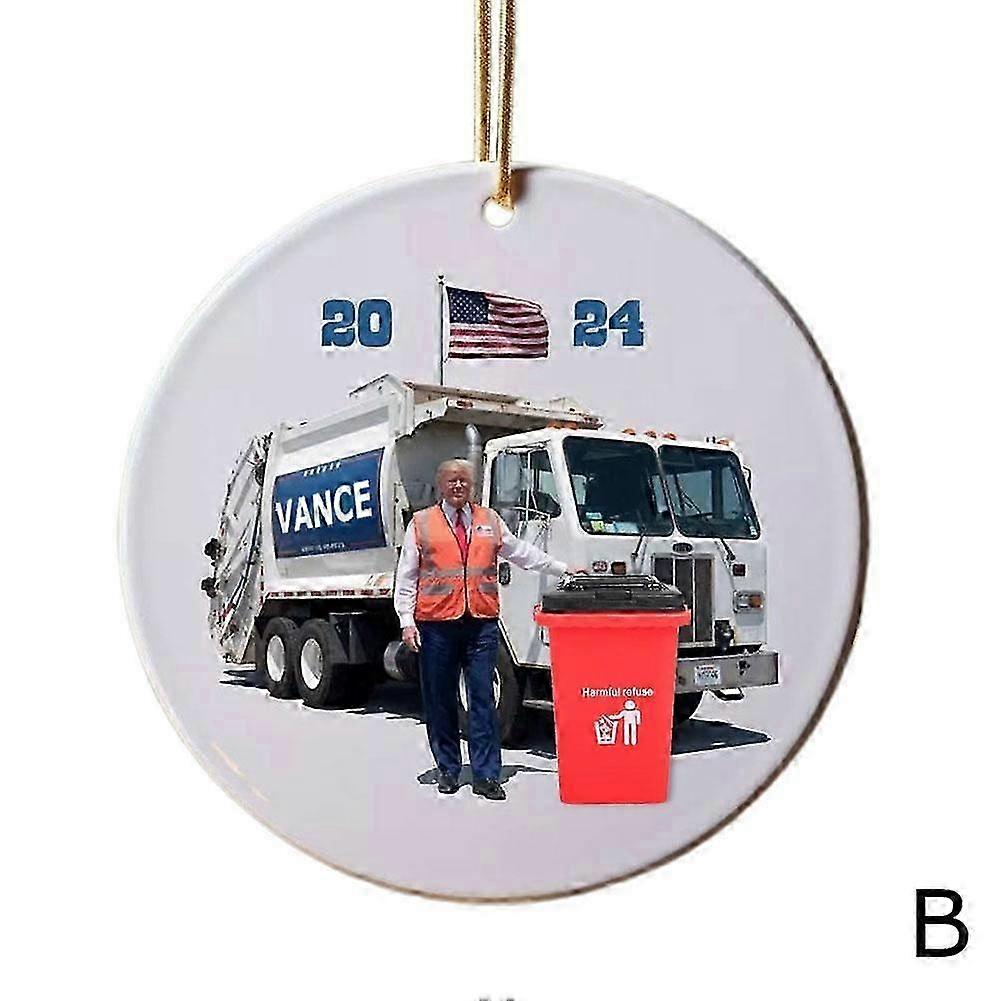 DonaldTrump Rides Garbage Truck Hanging Ornament Round Pendant Decorations 2025