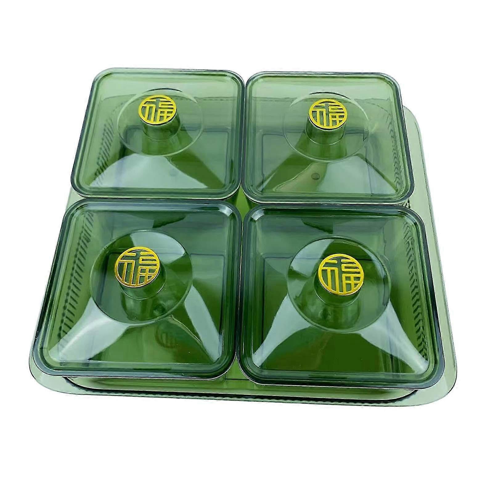 Description: Dried Fruit Tray: The Dried fruit snack serving plate is made of ps material, sturdy structure and durable.Multifunctional: Divided serving dishes can be used to store nuts, dried fruits, snacks, fruits, appetizers, candies, etc. and can also be used as a condiment box.Portable: Candy nuts dish with lid, which can effectively seal the food or seasoning inside the container, dustproof, with tray, easy to move.Multi Grids: Multiple compartments dried fruit tray, can be placed individually to avoid mixing and keep the table clean and tidy.Widely Used: Food storage container is suitable for home, kitchen, dining room, restaurant, party, living room, office and other occasions. Size Chart: 23.5cmx21cmx7.2cm/9.25inchx8.27inchx2.83inch Package Includes: 1 Serving Tray4 dish Note: Please allow slightly errors due to manual measurement and different monitors.