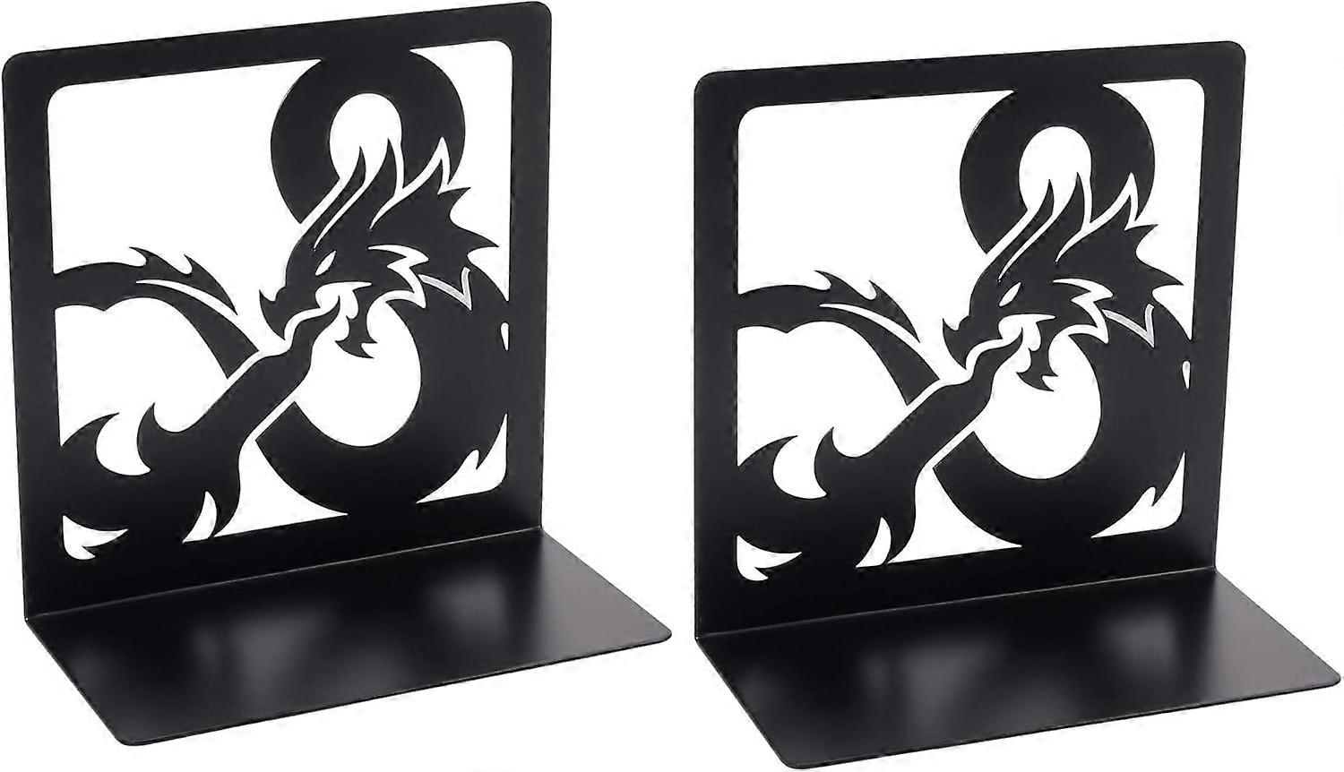 Dragon Themed Bookends, Non-Skid Heavy Duty Metal for Books, DVDs, Video Games, Exquisite Craftsmanship with Powder-Coated Surface, Artistic Work for