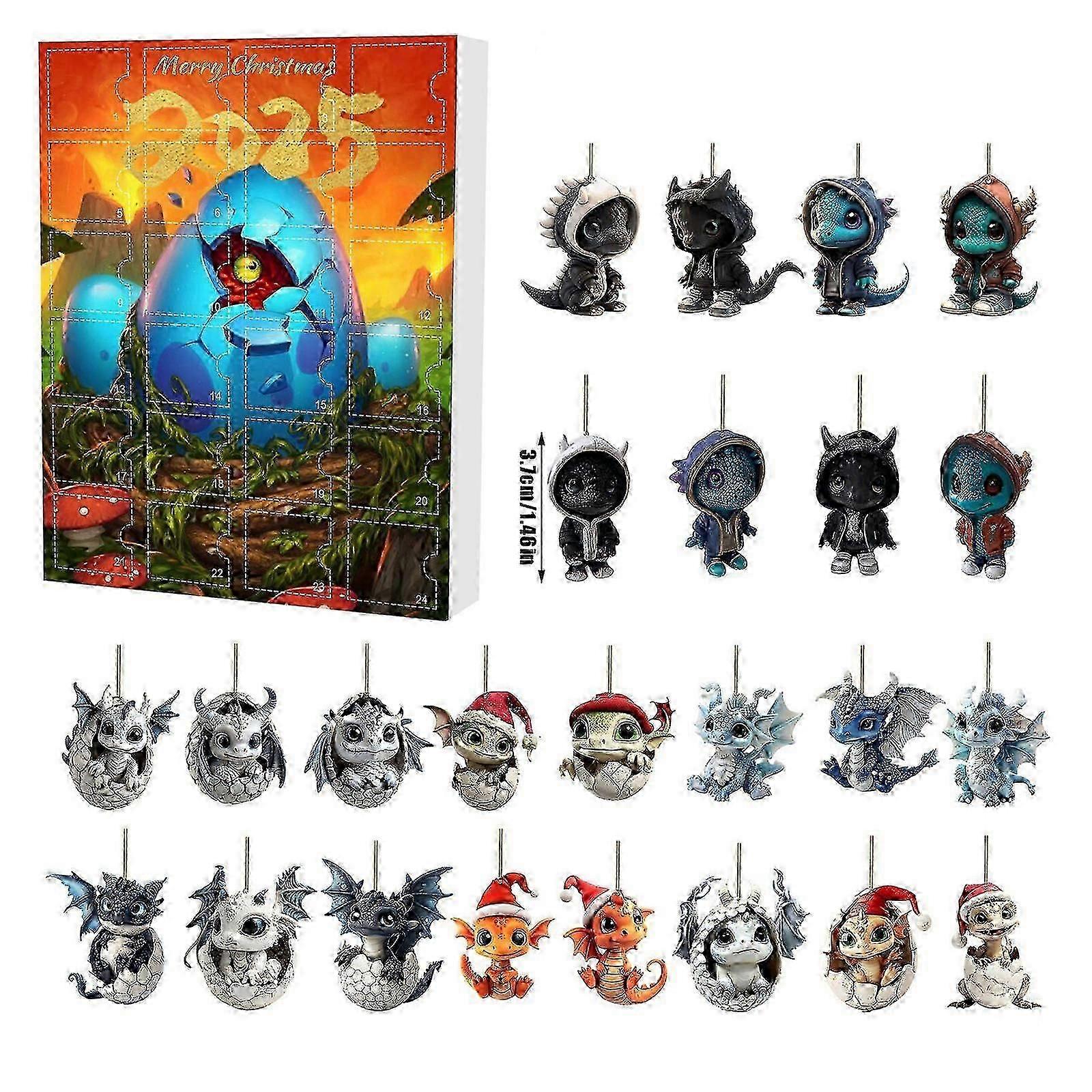 Dragon Advent Calendar 2024, Dragon Christmas Advent Calendar, Realistic 2D Acrylic Dragon Baby Ornaments, Cute Dinosaur Advent Calendar