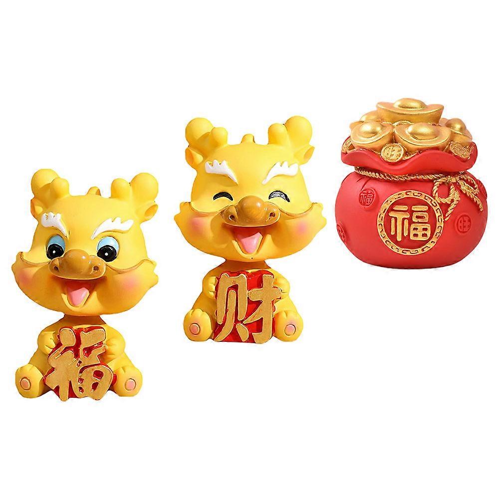 Dragon Sculpture Year of Dragon Decoration for Colleagues Resin Assorted Color for Desk Decoration 3Pcs