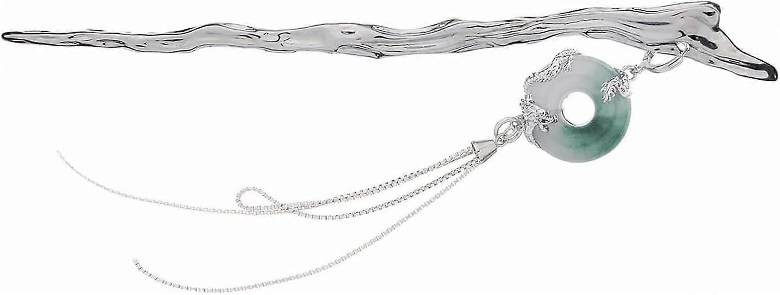 Dragon Hairpin With Tassel Earrings, Gradient Dark Green, Chinese Inspired, Elegant Hair Accessory, 17.8x16 cm, Silver