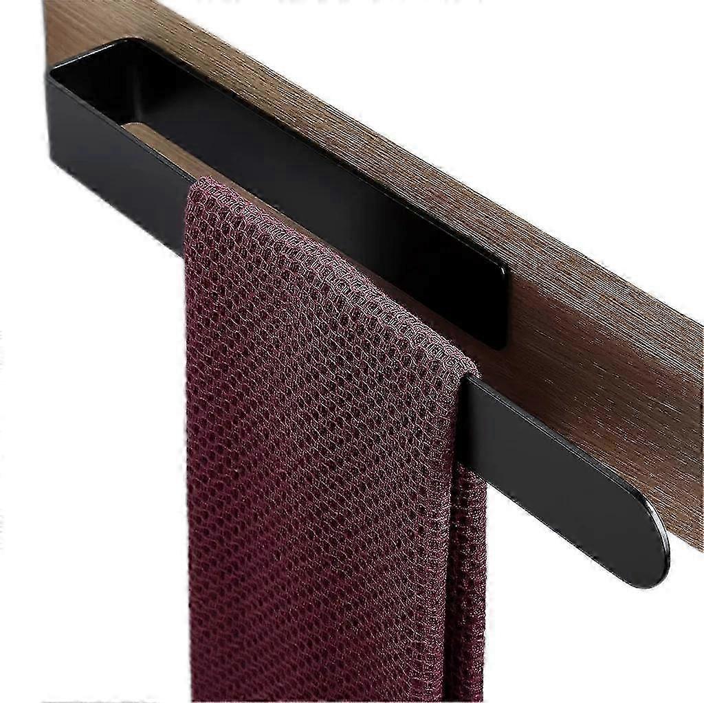 No-Drill Self-Adhesive Towel Holder, 37cm Brushed Stainless Steel Bathroom Kitchen Rail - Black