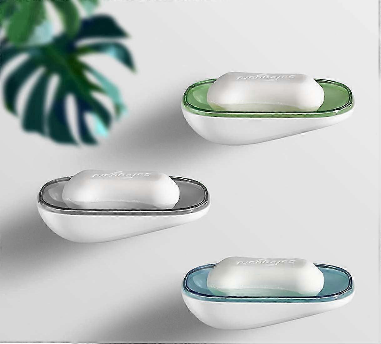 3 pieces wall mounted soap dish, suitable for any smooth wall. You can use it in the bathroom, sink, kitchen. Beautiful three colors of gray, green, blue and white the body, simple and elegant soap dish The design is from the sports car rearview mirror inspired and this simple post-modern soap dish adapts to any style of home. Super self-adhesive wall, withstands 2 kg of weight; No hole on the wall, no damage; Detachable soap dish body for easy cleaning. When you see this beautiful sink soap dish, you will not forget to wash your hands frequently. elegant simple design self-adhesive health Suitable for many occasions