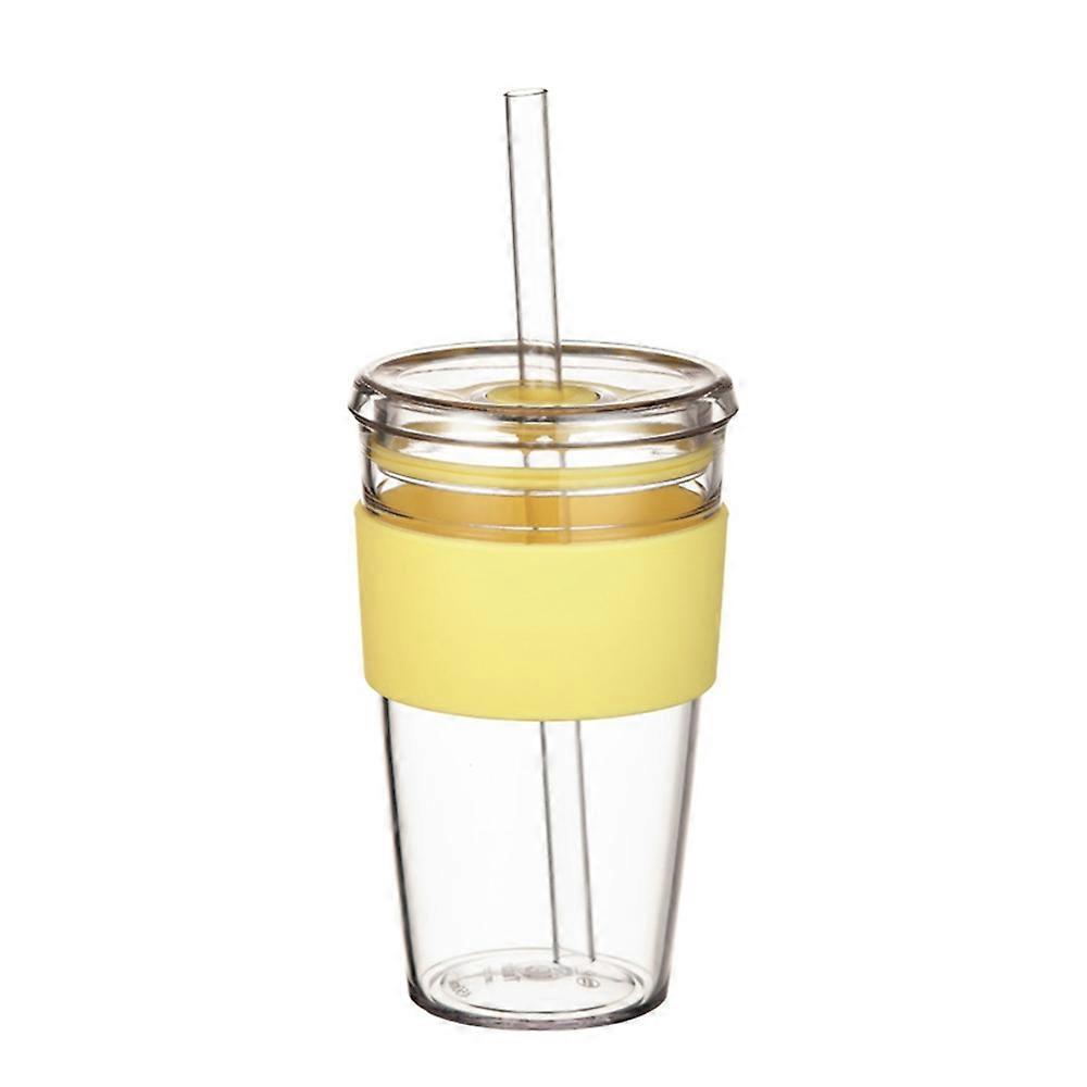 Drinkware & Tea Sets 450ml Tritan Straw Cup Water Bottle Coffee Mug with Sleeve Portable Drinkware for Home Office (No FDA, BPA-Free) Yellow