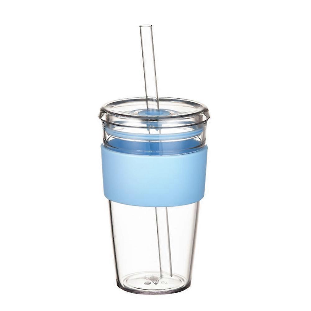 Drinkware & Tea Sets 450ml Tritan Straw Cup Water Bottle Coffee Mug with Sleeve Portable Drinkware for Home Office (No FDA, BPA-Free) Sky Blue