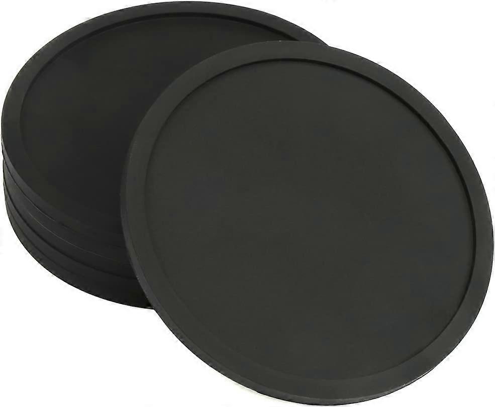 Drink Coasters Pad Mat Black Round Silicone Rubber Mug Coaster Non Slip for Coffee Beer Mug Wine Glass Bottle Home and Bar(6pcs, black)