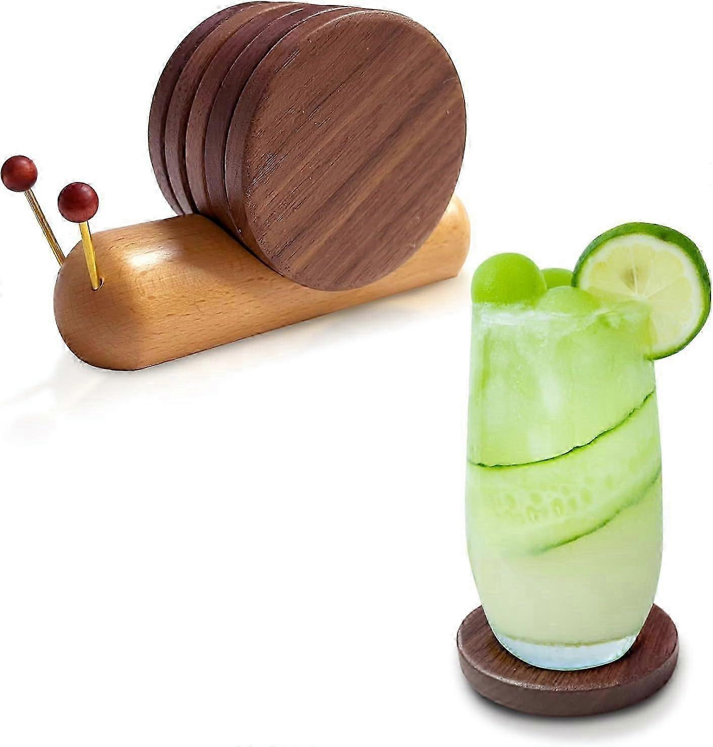 Wooden Coasters for Drinks, Funny Coasters 5 Pcs Cute Snail Natural Small Wood Coasters Set with Holder Bar Coasters Decorative for Coffee Table Desk