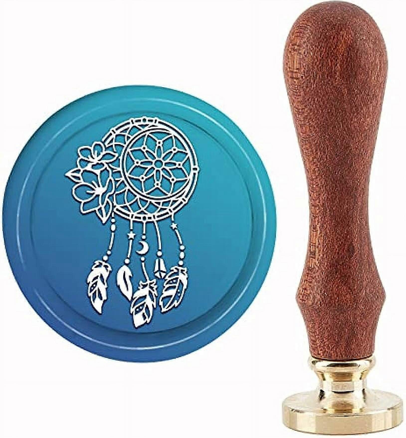 Dream Catcher Wax Seal Stamp Flowers Sealing Wax Stamps 30mm Retro Vintage Removable Brass Stamp Head with Wood Handle for Wedding Invitations Hallowe